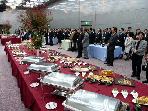 懇親会は10月31日(土)の18時から名古屋国際会議場の4階のレセプションホールで大会準備委員長の本多豊彦先生の司会のもと行われました。来賓挨拶では、日本歯科医学会会長の江藤一洋先生、愛知県歯科医師会副会長の渡辺正臣先生、第2回日本障害者歯科学会大会長で名誉会員の糸山昇先生(名古屋)の祝辞をいただき、乾杯では愛知県心身障害者コロニー副総長近藤薫先生から、昭和51年に第4回の日本障害者歯科医療研究会が愛知コロニー講堂で開催された当時を御存知で、その当時の参加人数の規模を思い返すと当日のその発展ぶりに目を見張るものがあり感慨深いとのお言葉をいただきました。